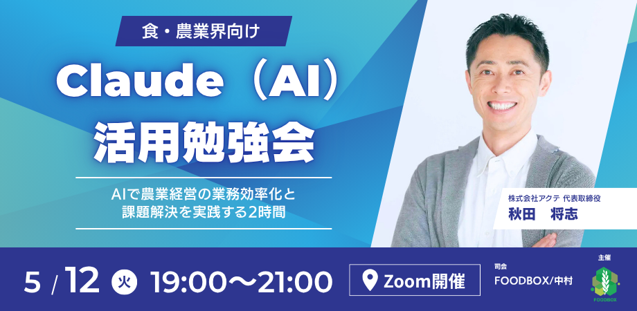 食・農業界向け Claude(AI)活用勉強会を開催します!|5月12日(火)